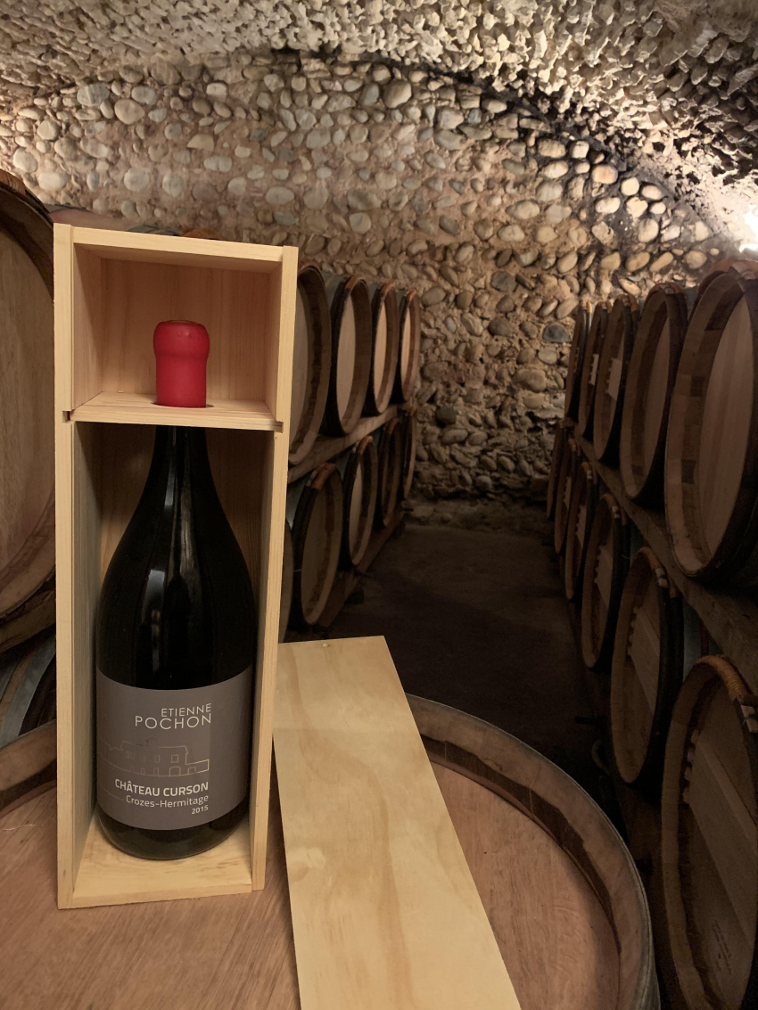 Ce vignoble conduit en agriculture biologique depuis 2017 compte 16ha de vignes en AOC Crozes Hermitage, 12ha en cépage Syrah pour le rouge et 4ha en cépages Marsanne et Roussanne pour le blanc. Nous proposons 2 cuvées, la principale, la cuvée « Etienne POCHON » et une sélection sous le nom de cuvée « Château Curson ». Elles se distinguent par leur concentration et leur finesse. Le « Château Curson » est issu des vignes âgées les mieux placées en coteau. Cette cuvée est de bonne garde. L’optimum de dégustation est entre 5 et 10 ans.